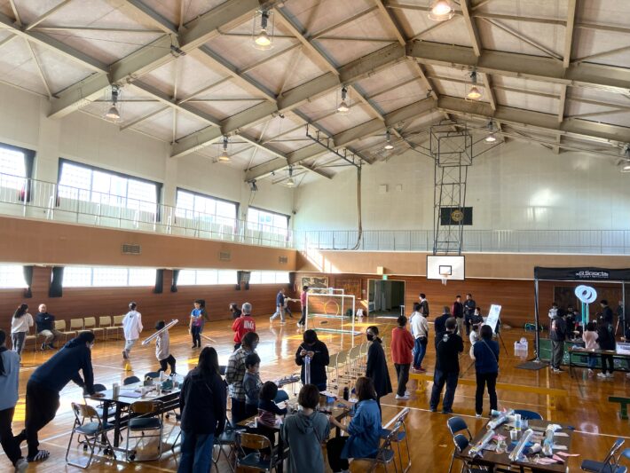 サングリン太陽園とグループ会社の北日本スカイテックは、10月25日(土)に栗山町立継立小学校で行われたPTA親子レクに参加し、子どもたちのドローン操縦体験とバルーンロケット作りを実施しました。