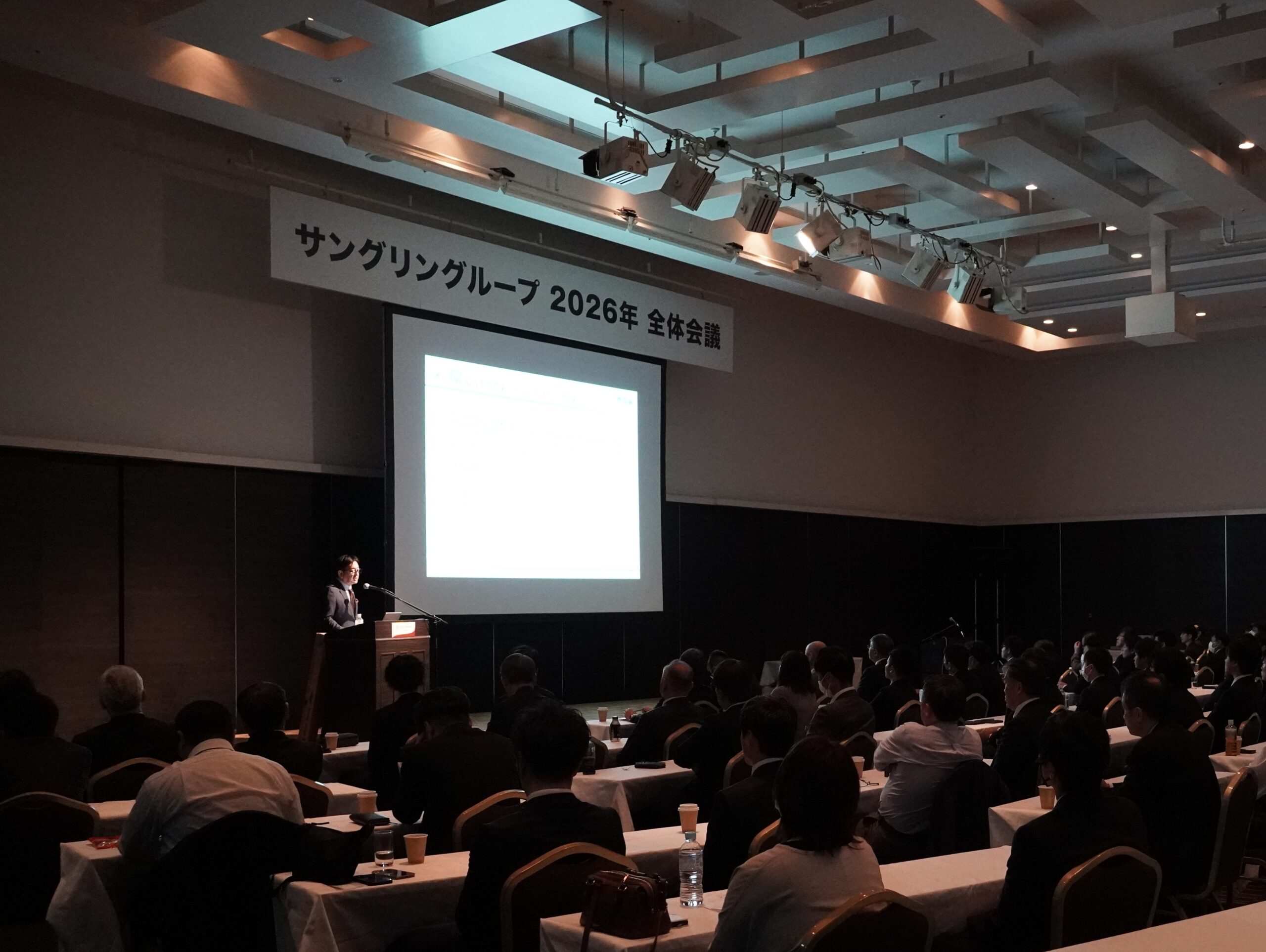 1月17日(土)、サングリングループはホテルエミシア札幌にて「2026年度サングリングループ全体会議」を開催しました。全体会議は、1年間の事業方針などを共有する目的で社員が一堂に会し、例年1月に行っています。