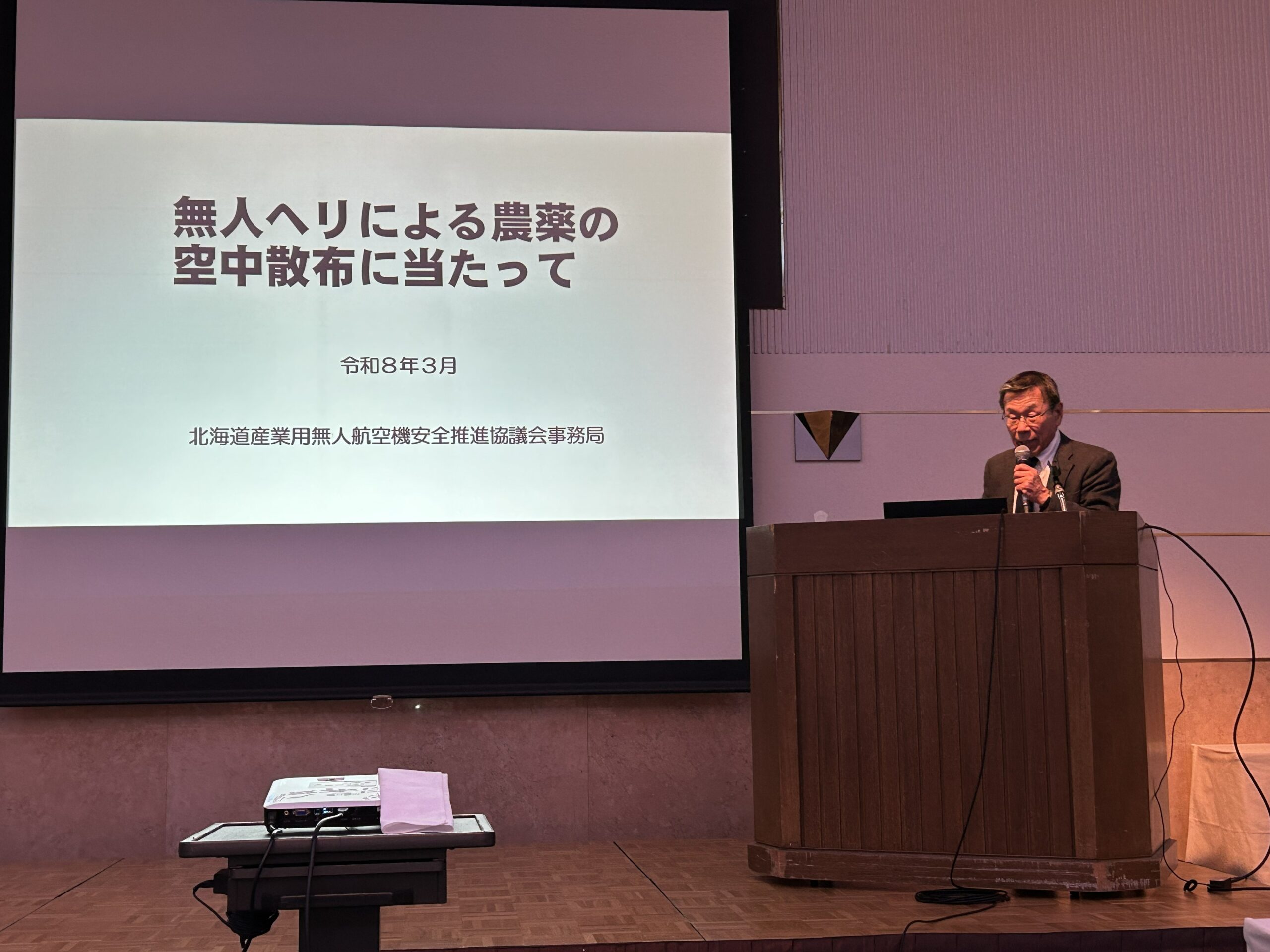 事業検討会では、産業用無人ヘリコプターによる防除作業の安全対策についての講演や、賛助会員の農薬メーカー3社による空散登録農薬の紹介が行われました。通常総会では、令和7年度の事業内容や令和8年度の事業計画について審議されました。