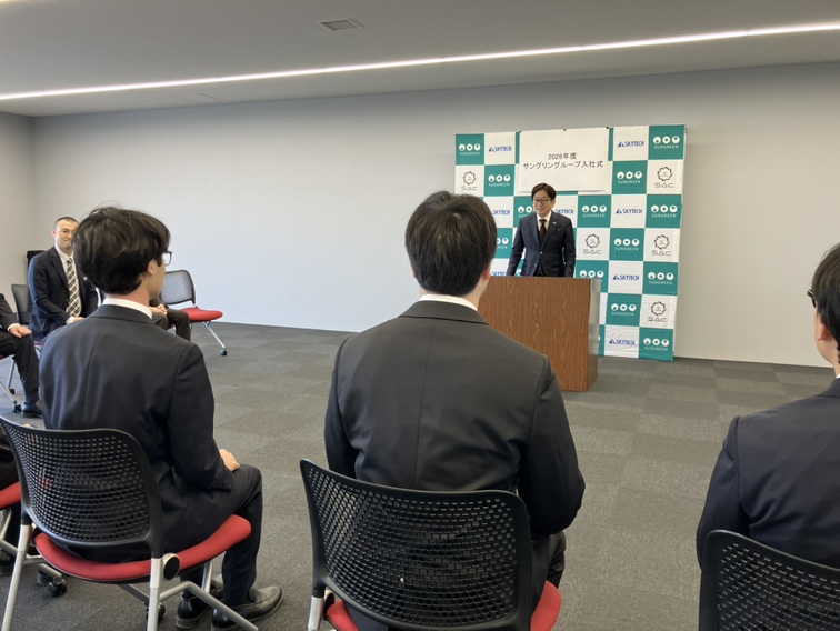 会社情報 26.04.01 2026年度入社式を開催しました 4月1日、サングリングループは2026年度入社式を執り行いました。 本日より、大学や専門学校を卒業したばかりの5名の新入社員がサングリングループに加わりました。 入社式では、代表取締役社長・北濱より新入社員一人ひとりに辞令を交付し、激励の言葉をおくりました。 サングリングループは、新たに加わった新入社員とともに、北海道農業への一層の貢献を目指して事業活動を続けてまいります。 前の記事 一覧へ