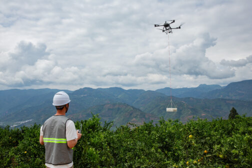 最大65 kgの吊り上げ能力で、より多くもの運べ、より遠くまで移動可能です。自動スイング制御、重量検知、荷積み・荷降ろしポイントへの自動ナビゲーションのような機能により、農林水産業・災害現場・資材運搬など幅広い用途に対応します。